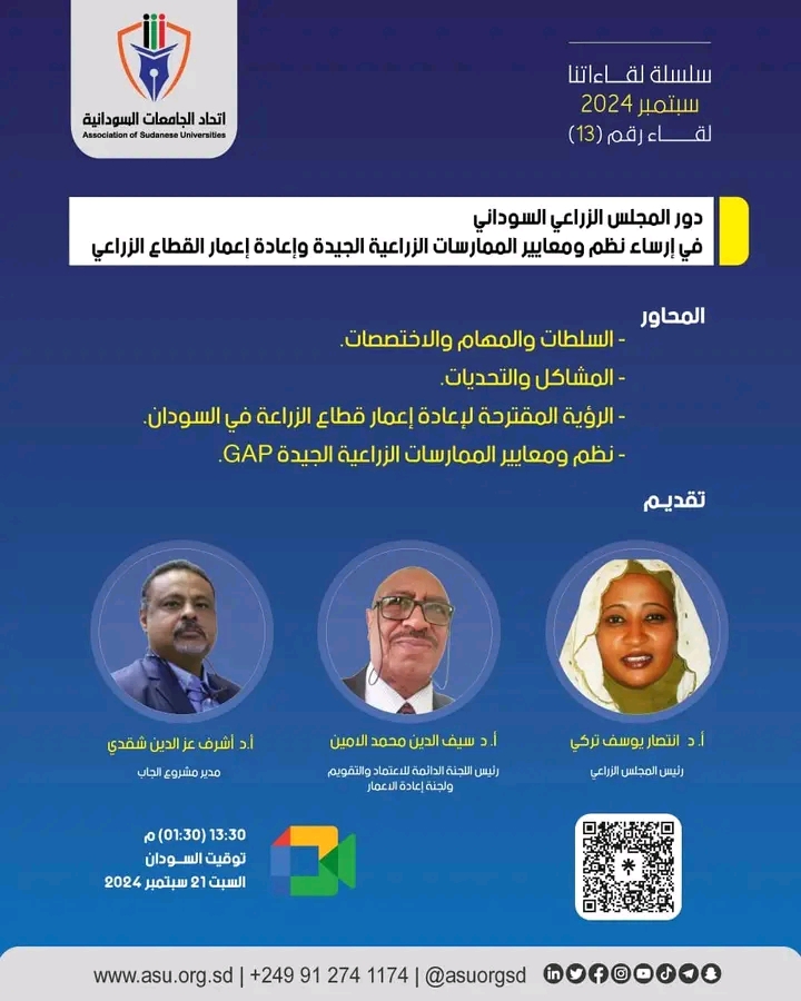 *دور المجلس الزراعي السوداني في ارساء نظم ومعايير الممارسات الزراعية الجيدة واعادة اعمار القطاع الزراعي